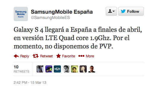 A pesar de lo que pudimos leer en el twitter oficial de Samsung Mobile España (@SamsungMobileES) sobre que en España solo se lanzaría, a finales de abril, el modelo LTE con procesador Snapdragon de 4 núcleos, como podemos ver en la imagen anterior.