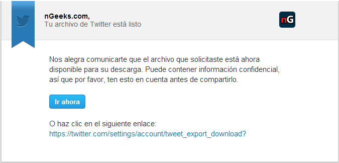 Twitter ha activado la opción de descargar el historial de todos los tweets para los usuarios en español a través de Twitter.com, una función que hasta ahora sólo estaba disponible para los usuarios registrados en inglés. También han añadido esta herramienta para los usuarios que tengan registrada su cuenta en alemán, finlandés, hebreo, farsi, francés, holandés, húngaro, polaco, noruego, hindi y malayo.